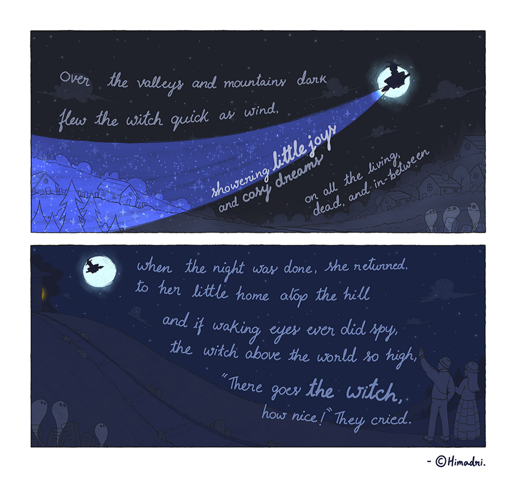 An illustrated poem about a witch. Contains pdfs in colour and black and white.